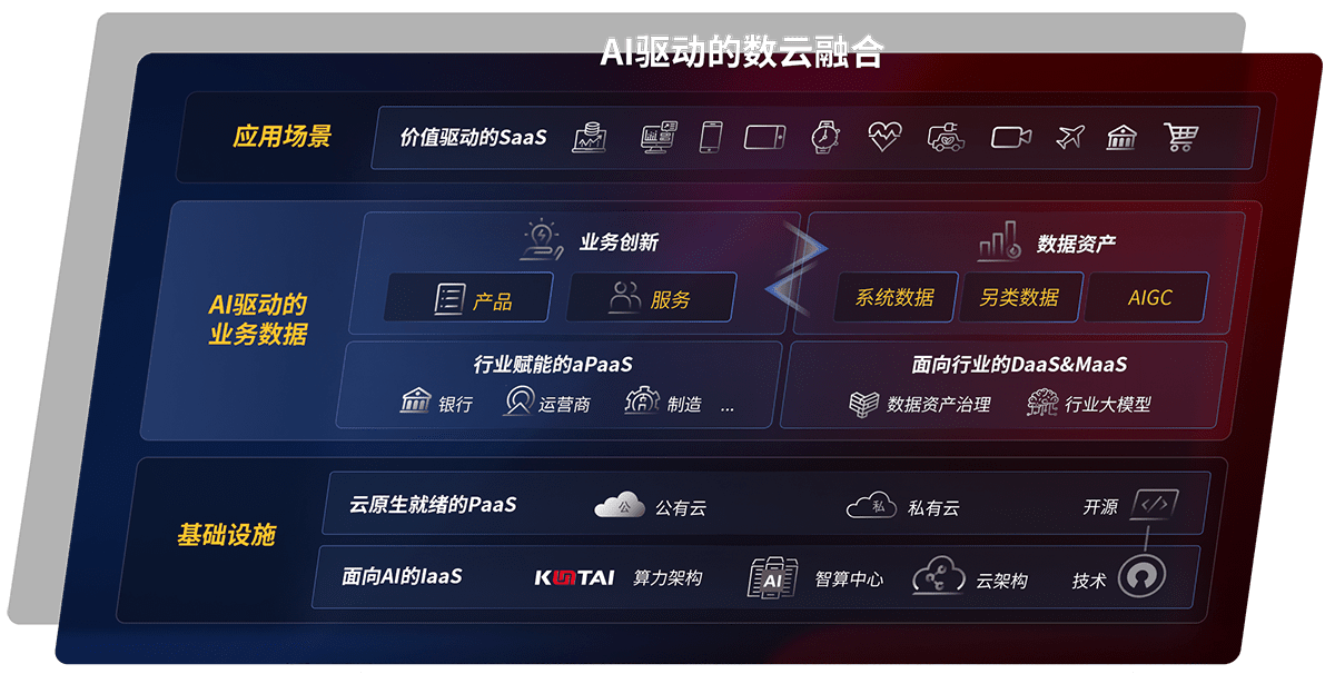 以尊龙旗舰厅鲲泰全国产化计算产品帮助金融行业客户构筑数字底座;以丰富的AI和数云产品及方案,,保障数据安全,,,,挖掘数据价值,,,,提升服务品质